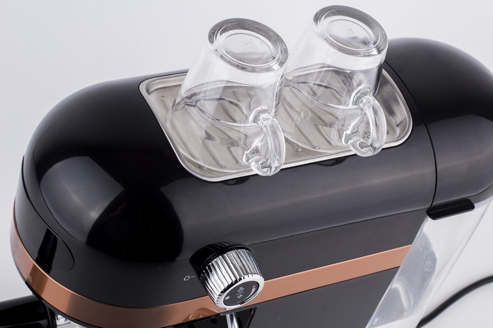8. Držač za čaše s dvije razine: Držač za čaše prima standardne šalice i visoke čaše (visine do 13 cm), što ga čini prikladnim za razne napitke na bazi kave i mlijeka.