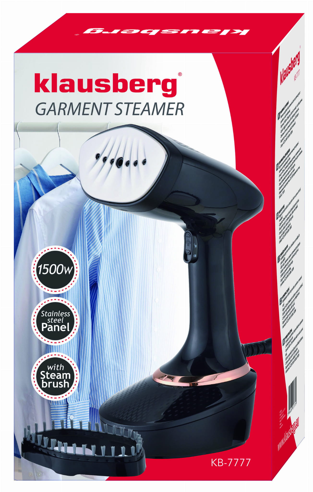KLAUSBERG KB-7777 glačalo za odjeću i tkanine u elegantnoj crnoj boji sa zlatnim rubom moderan je uređaj koji nudi učinkovitost i praktičnost pri brizi o vašoj garderobi i kućnom tekstilu. Zahvaljujući naprednoj tehnologiji pare, uređaj ne samo da uklanja bore, već i osvježava, dezinficira i daje novu svježinu i najzahtjevnijim tekstilima. Svojim elegantnim dizajnom i praktičnim rješenjima, ovaj aparat za paru idealan je za korištenje kod kuće i na putovanju.