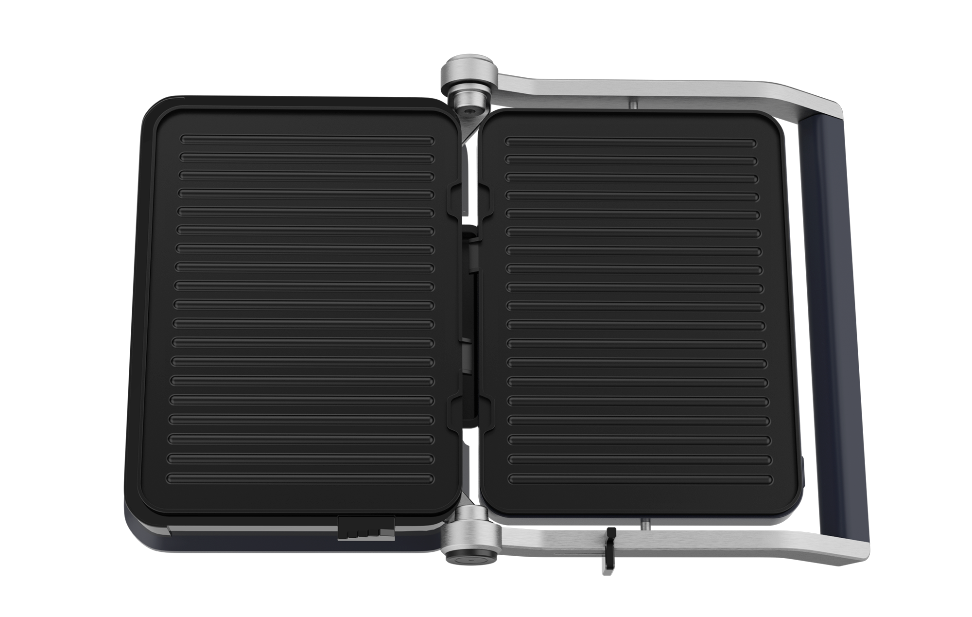 Snaga 2100 W, površina za pečenje 33×24,4 cm, grijaće ploče s neprijanjajućim premazom, drška hladna na dodir, LED zaslon na dodir, posuda za masnoće, podesiva temperatura za pečenje, senzor za debljinu mesa, temperaturna sonda