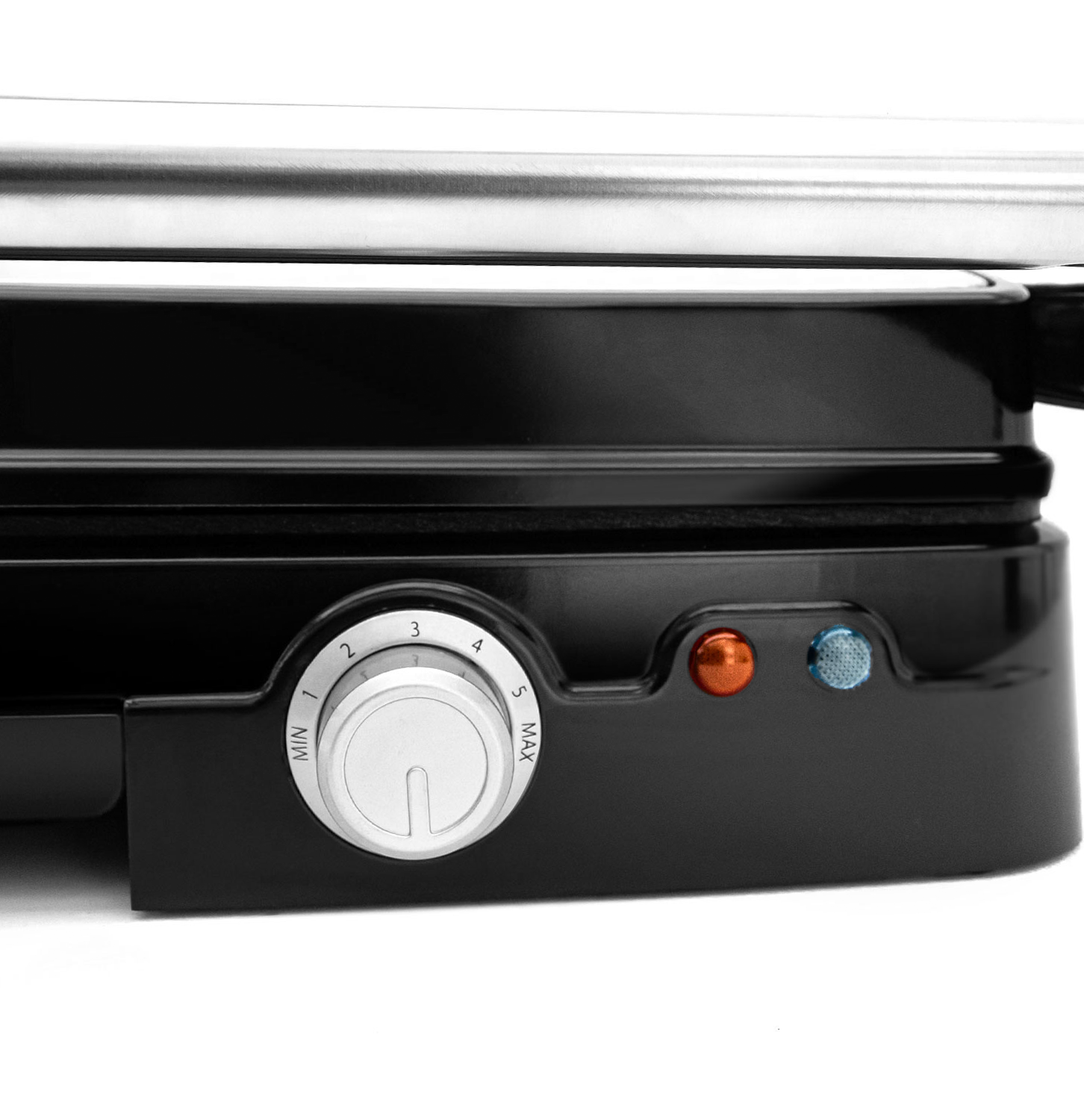 Odlikuje ga vanjština od nehrđajućeg čelika i drška hladna na dodir, kao i termostat sa podesivom temperaturom pečenja.